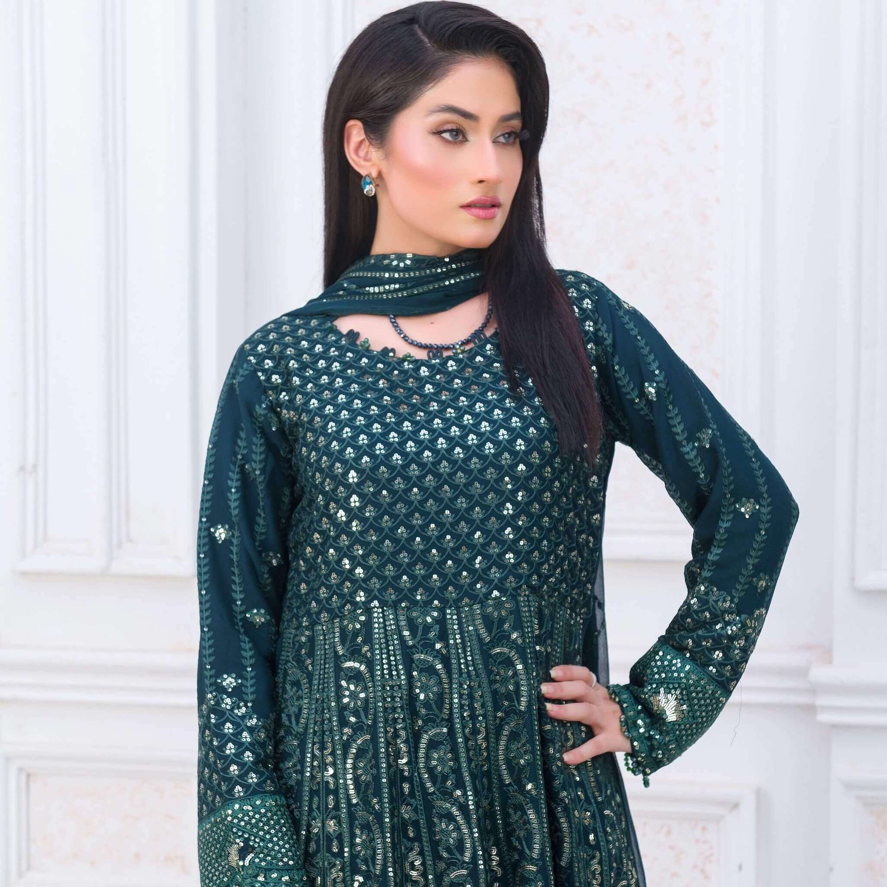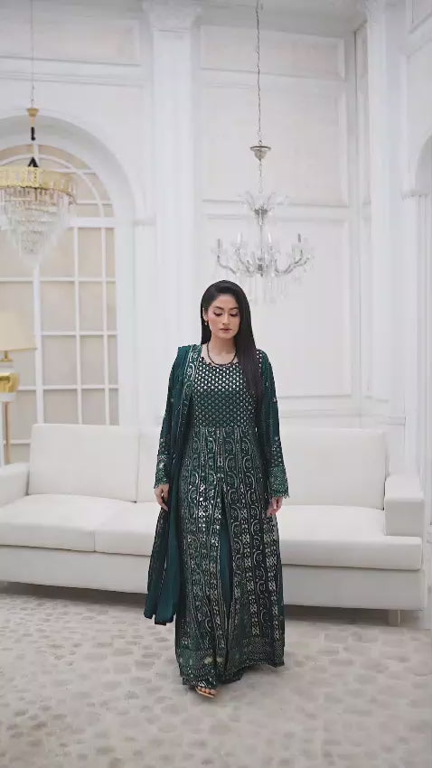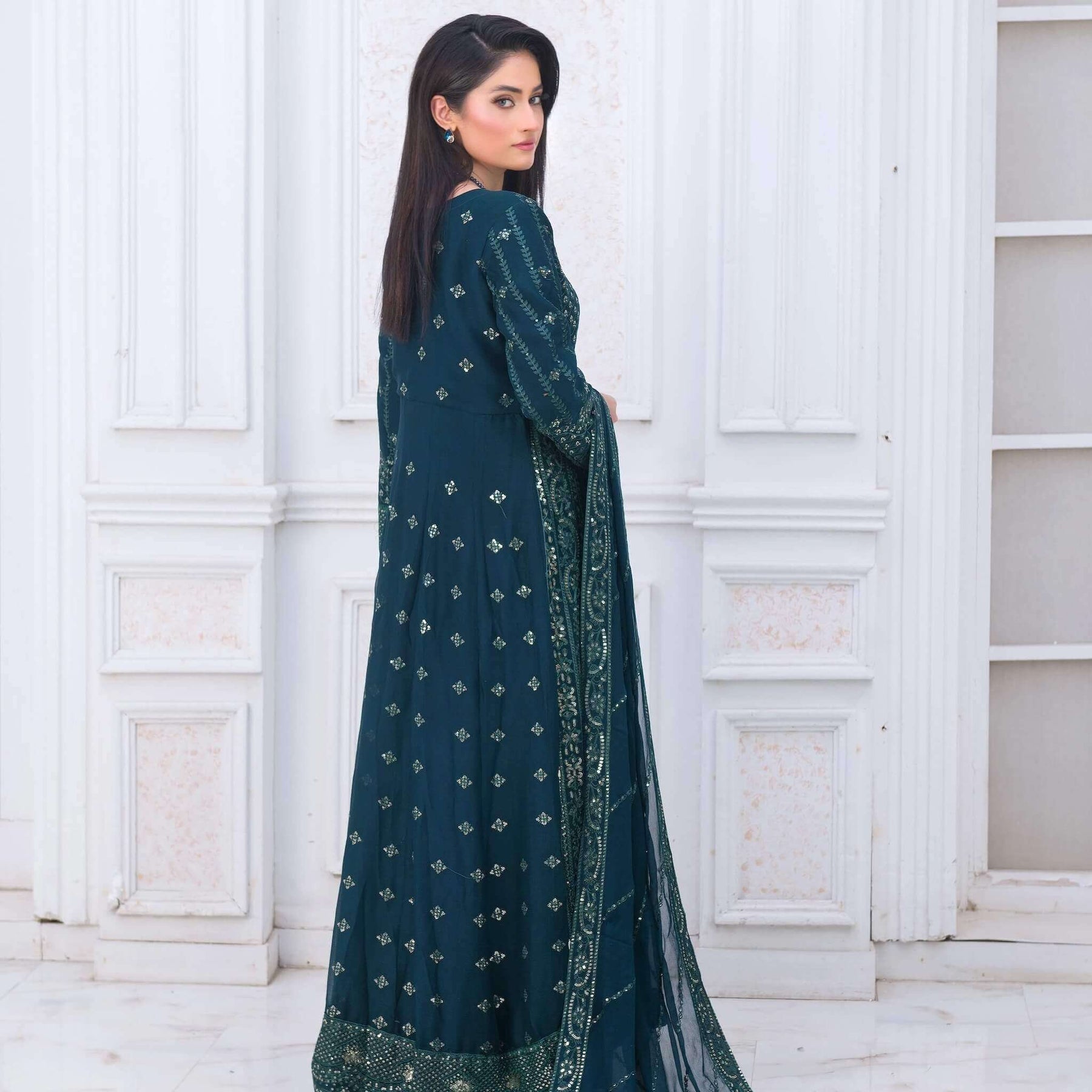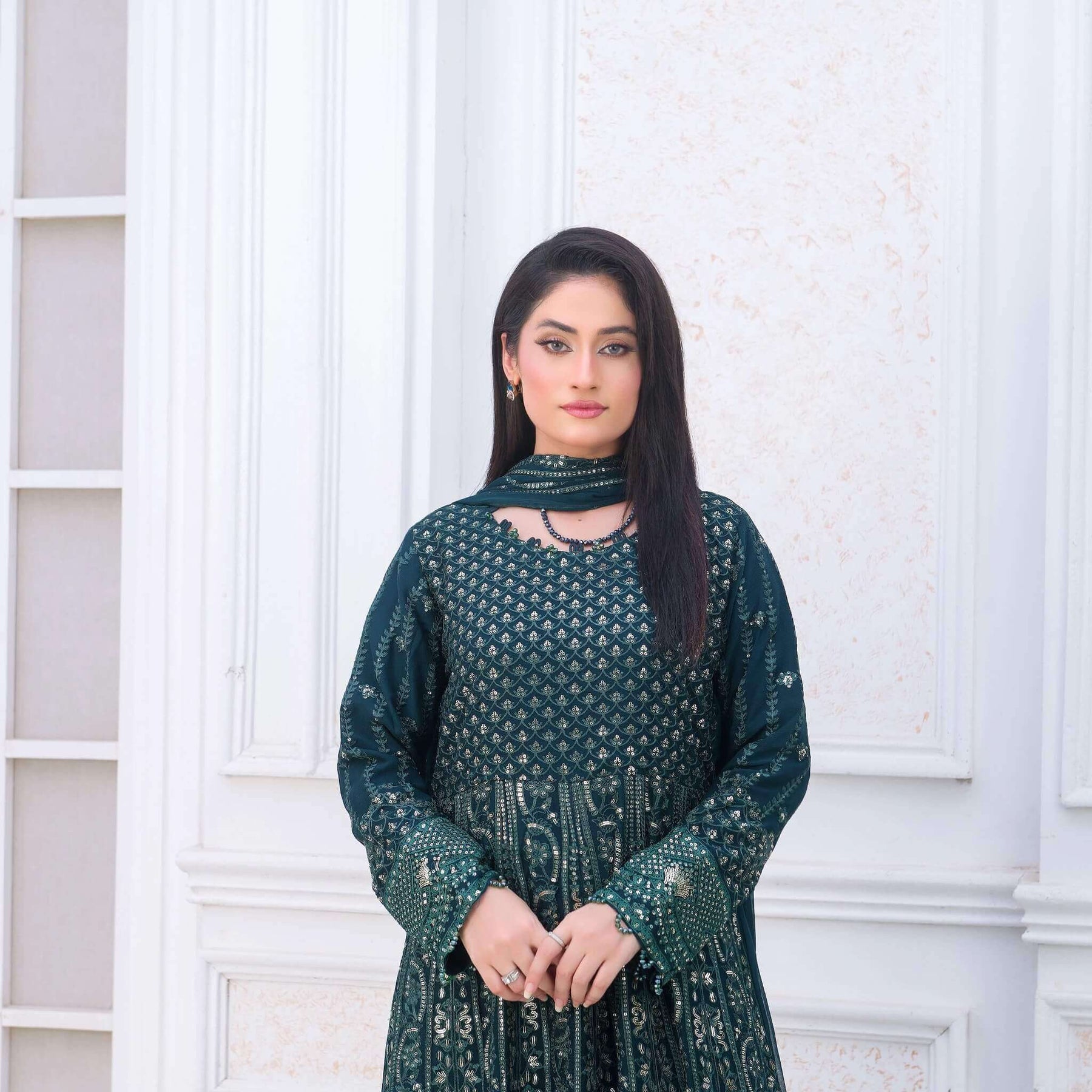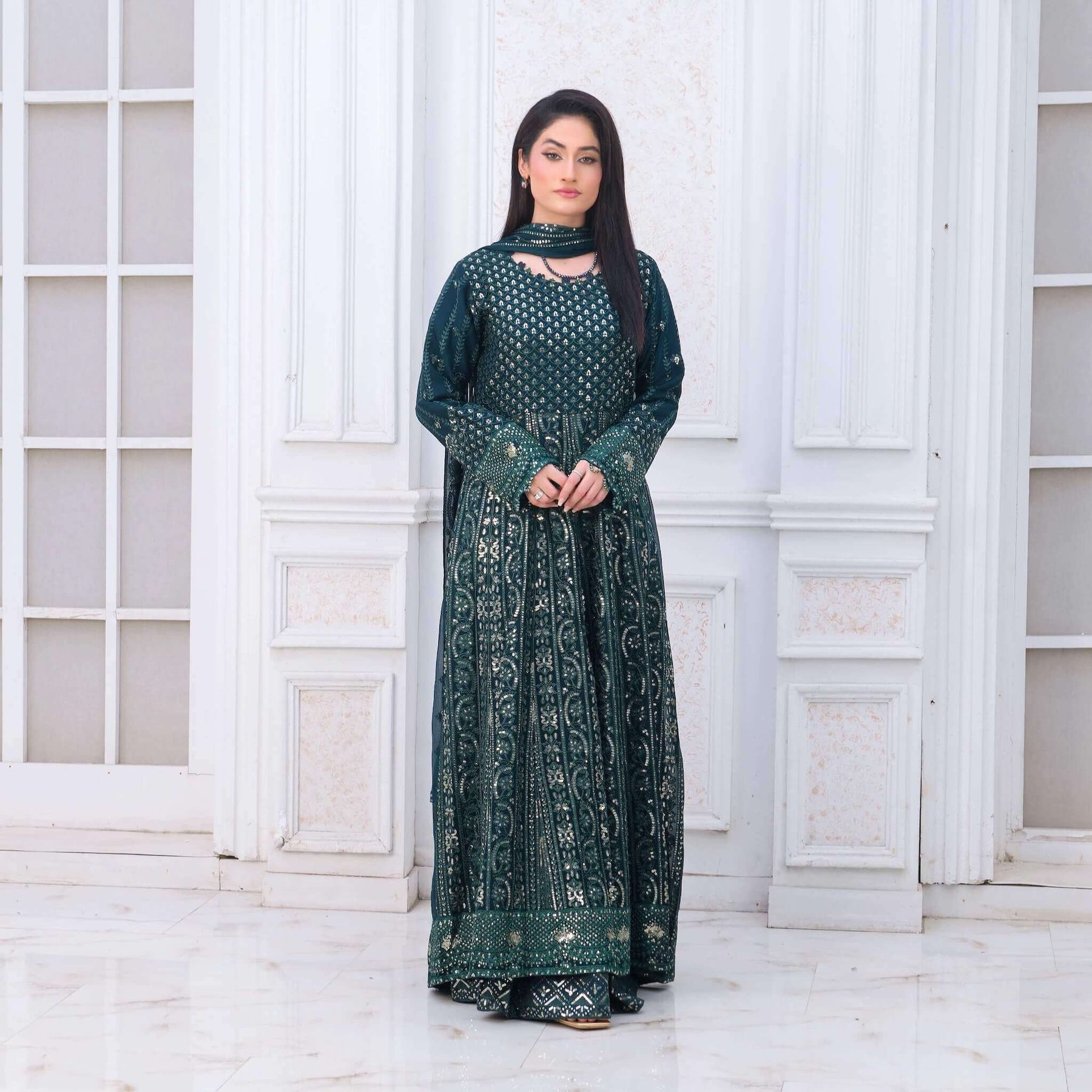 Green Wedding Lehenga Dress – Long Embroidered Party Wear Outfit with Dupatta