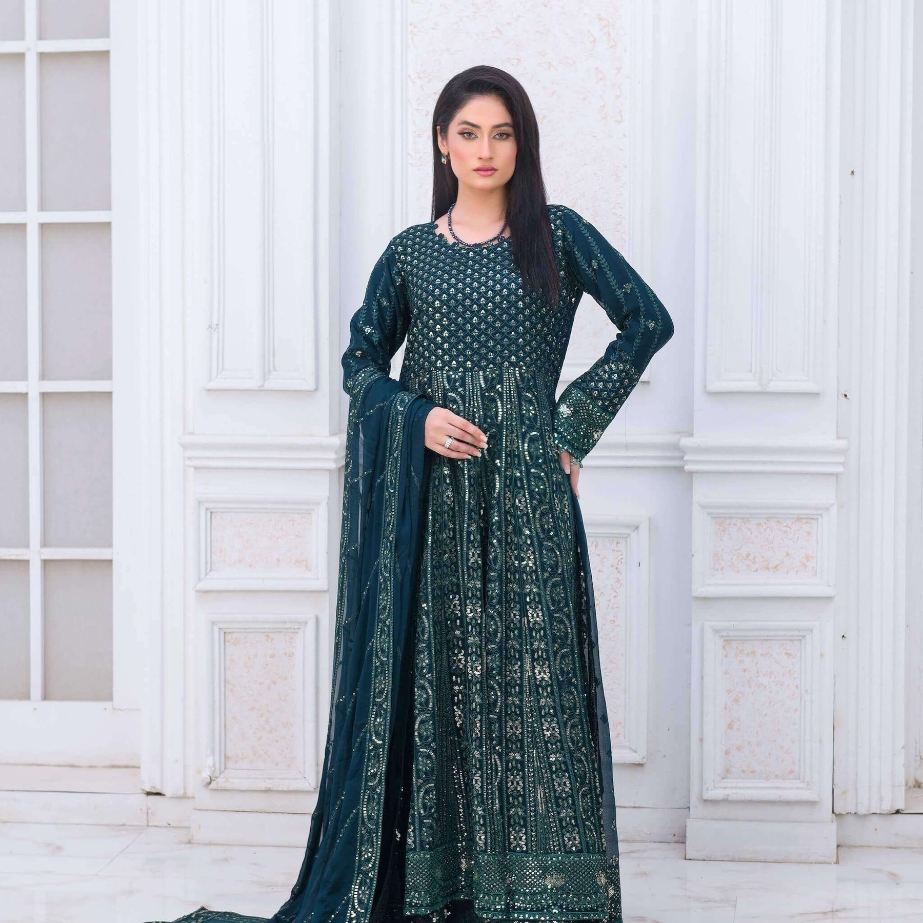 Elegant green long lehenga dress with dupatta, designed for weddings, receptions, and parties. Crafted with premium embroidered fabric and a flattering flared silhouette, this lehenga blends tradition with modern style. Perfect for bridesmaids or festive occasions. Includes lehenga skirt and dupatta. Available in multiple sizes with fast USA delivery.