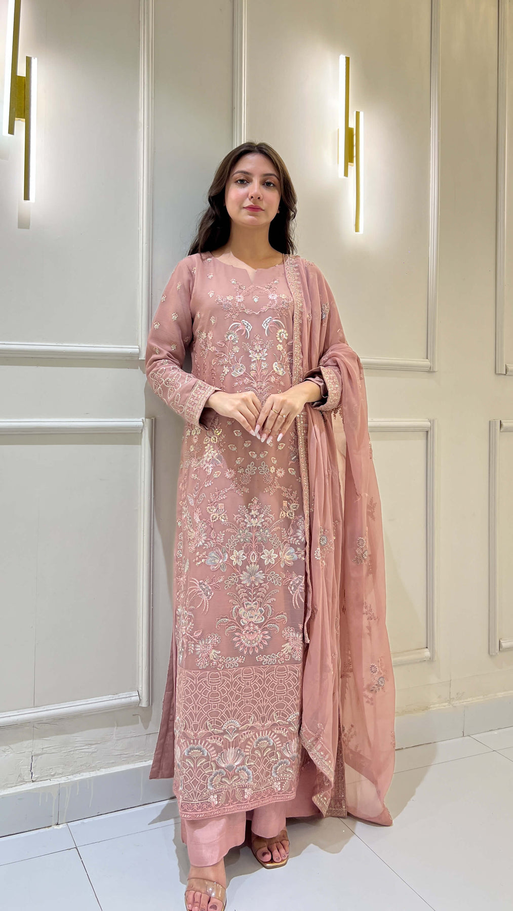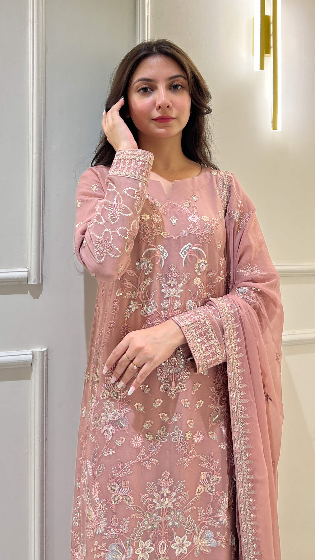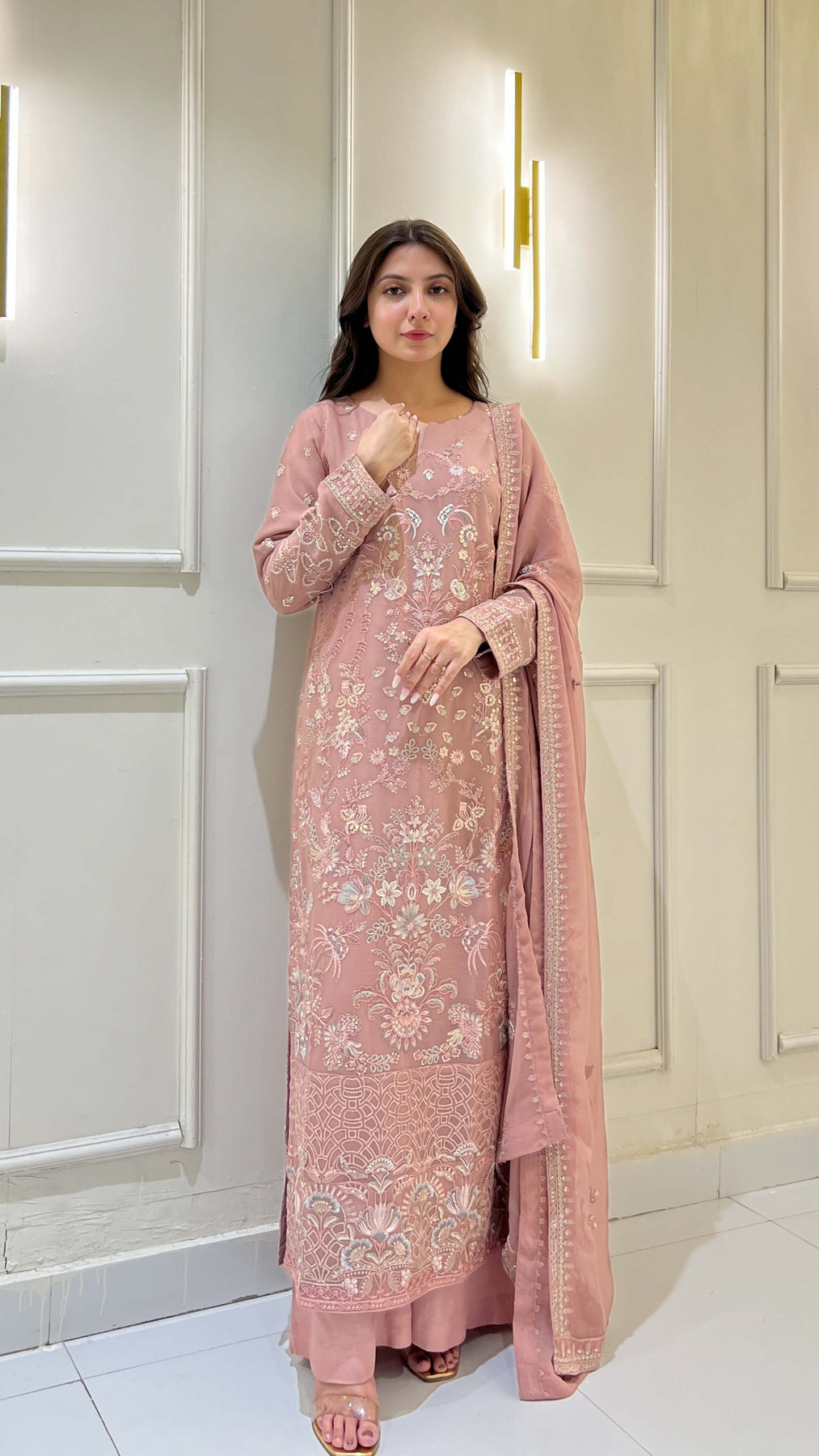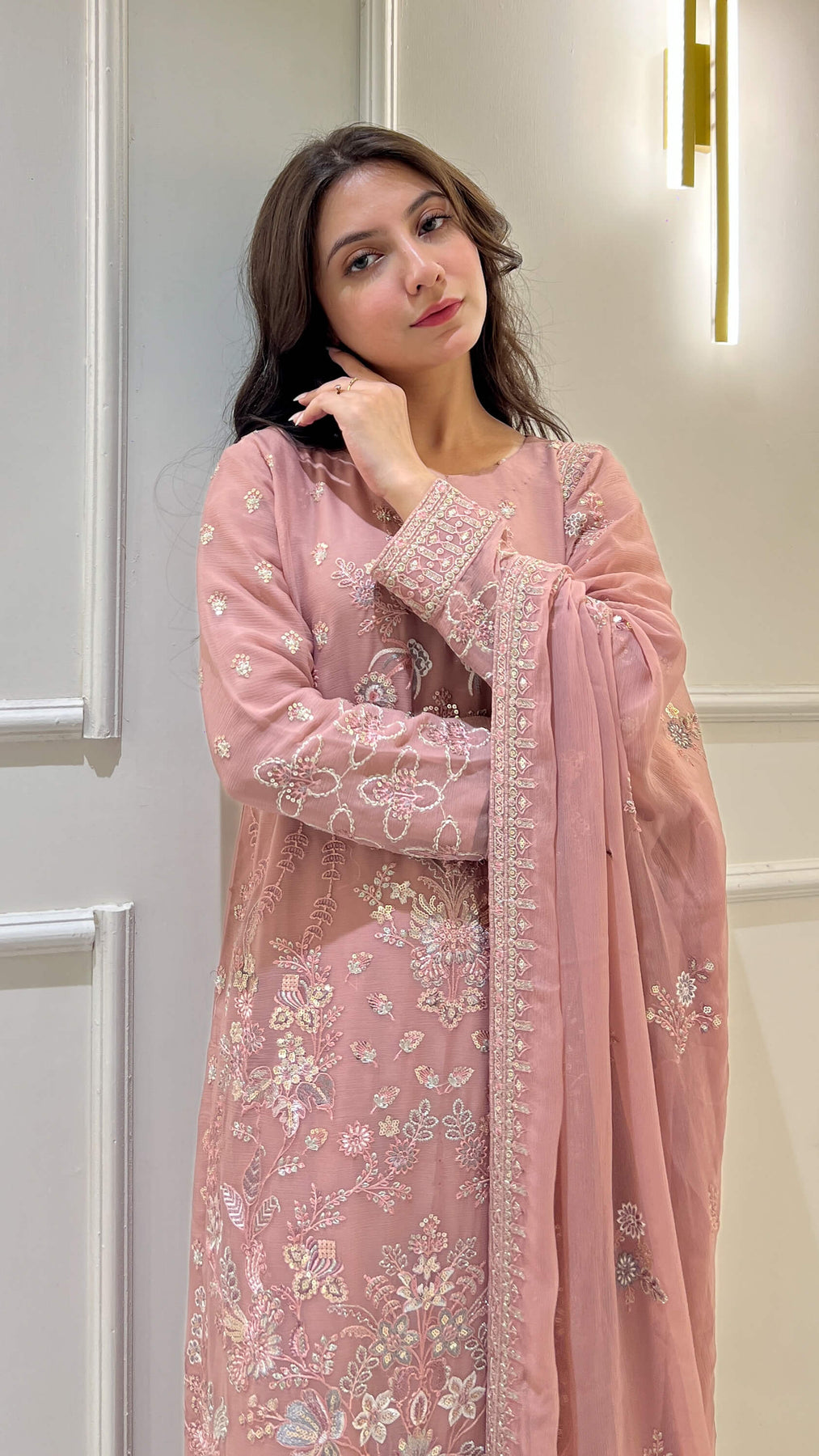 Tea Pink Chiffon Embroidered Shalwar Kameez 3-Piece Suit